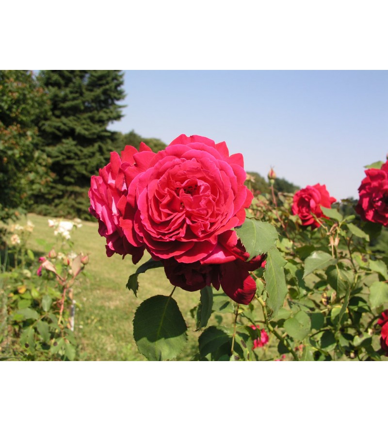 Keřová růže ‚Gruss an Teplitz‘ je krásná okrasná růže ideální do zahrady. Její červené květy přinášejí elegance a krásu.