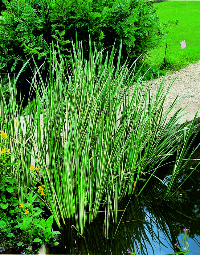 Puškvorec trávolistý panšovaný – Acorus gramineus Variegatus – Okrasná rostlina pro jezírka